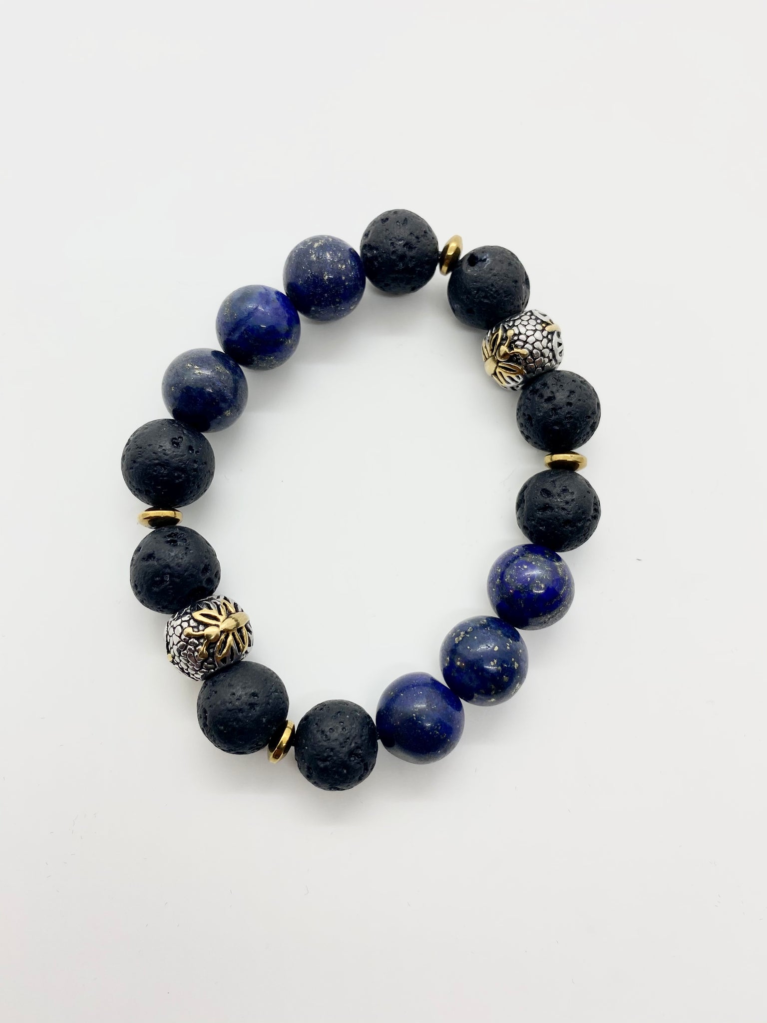 Blue and Black Chunky Sodalite Stone + Lavastone Blended with Titanium Studs