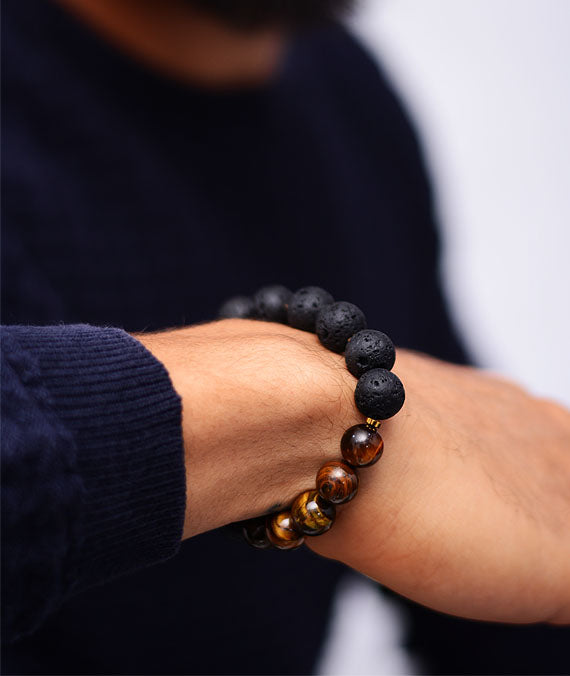 Brown+Black African Tiger Eye Stones + Raw Lavastones