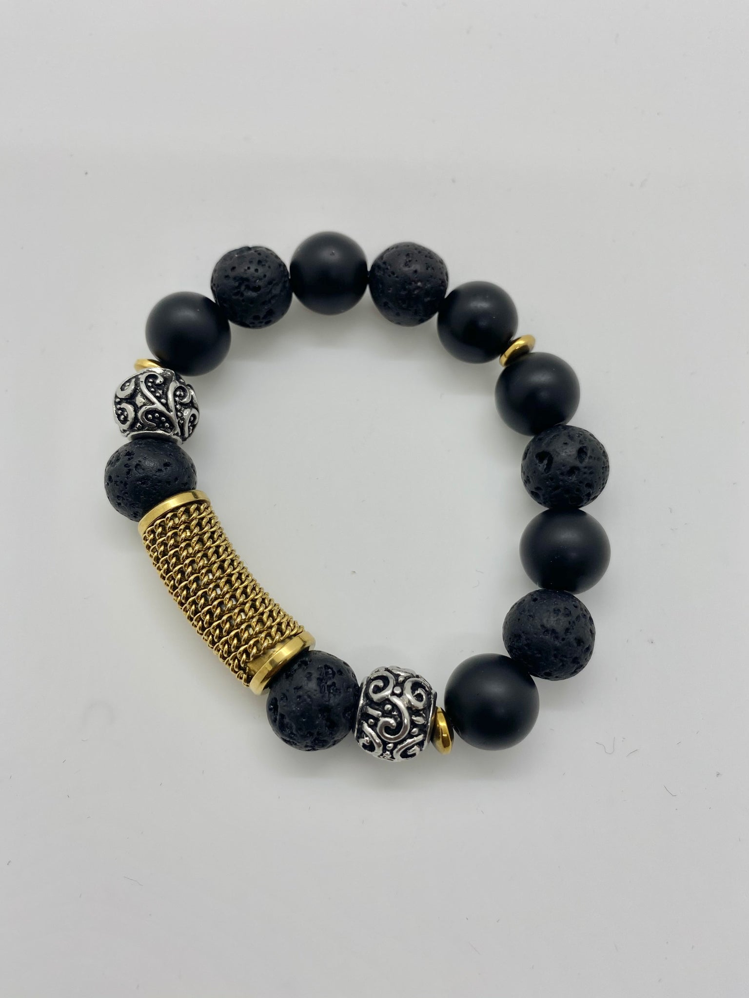 Metallic Titanium Rod, Chunky Studs + Lavastone & Onyx stones