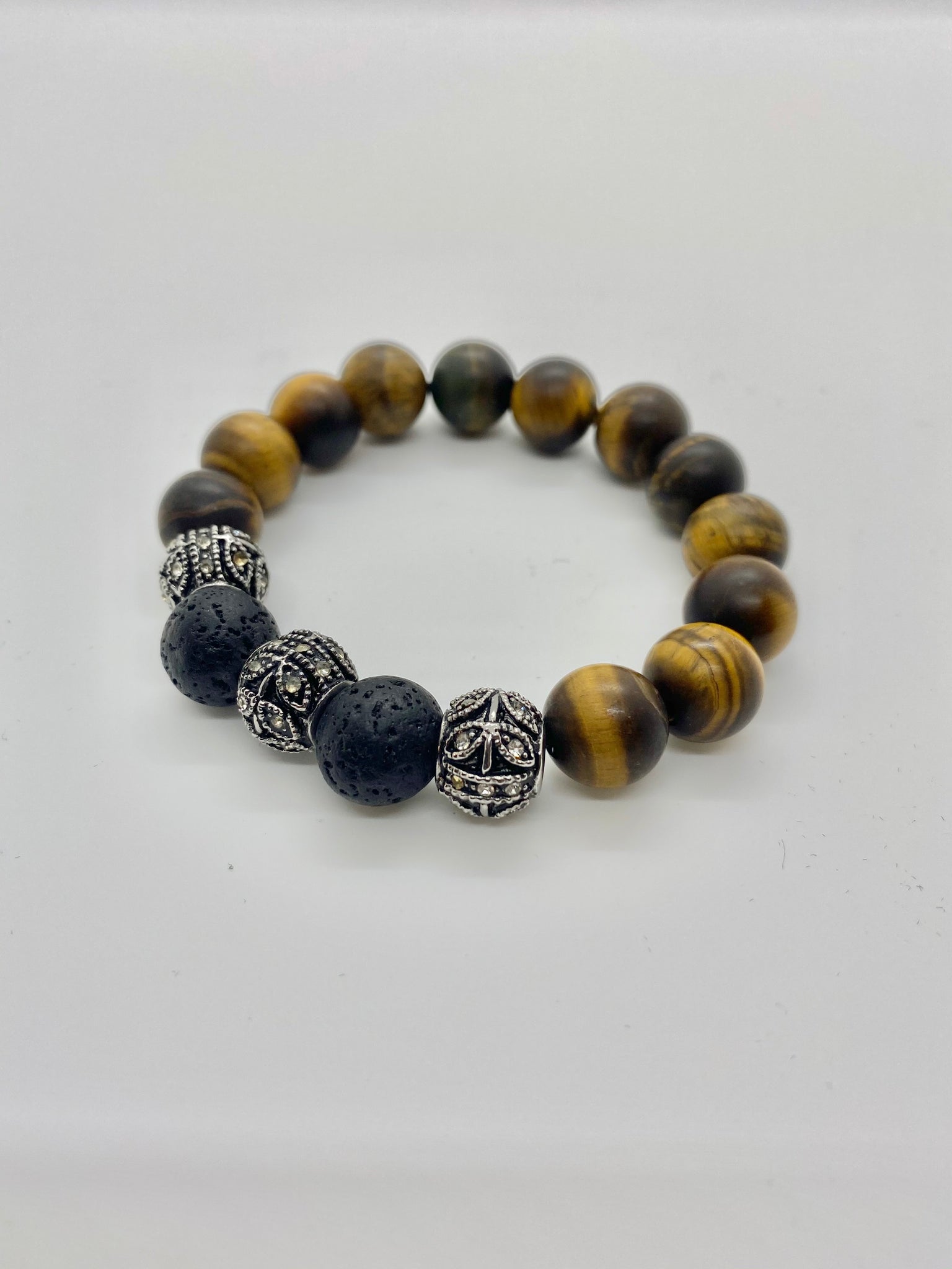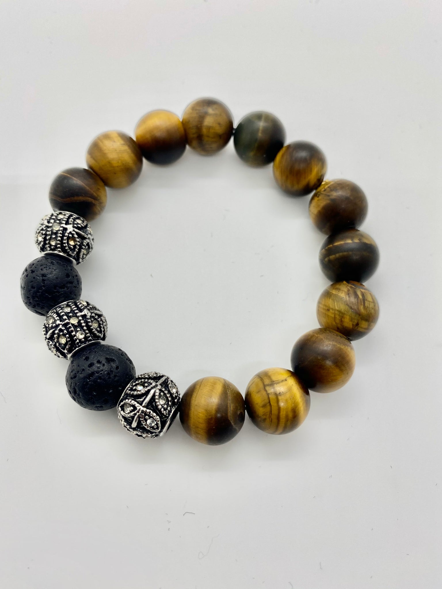 Brown Pure Matte Tiger eye Stone of Strenght + Crystal crusted Titanium Studs
