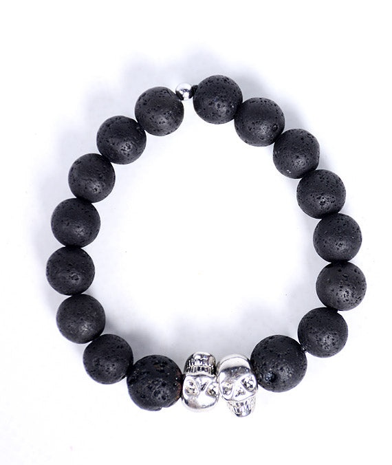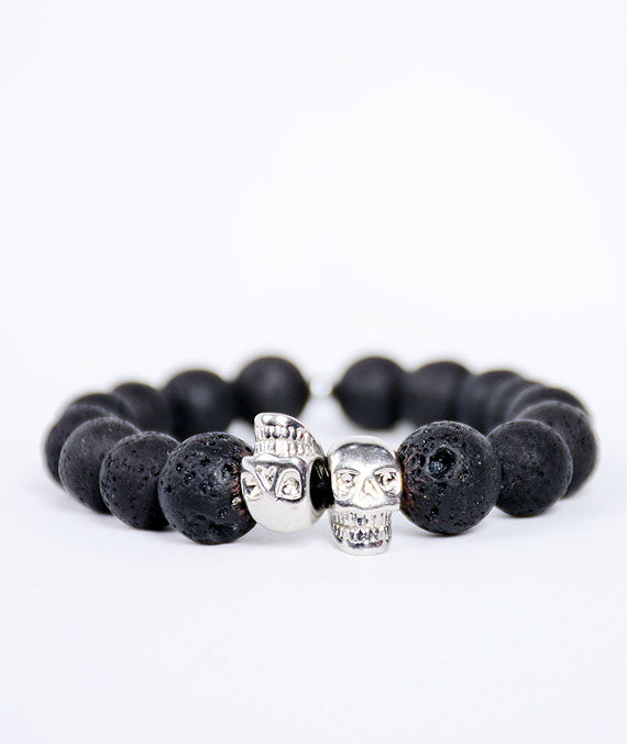 Black 925 Sterling Skulls + Smooth Onyx Stones