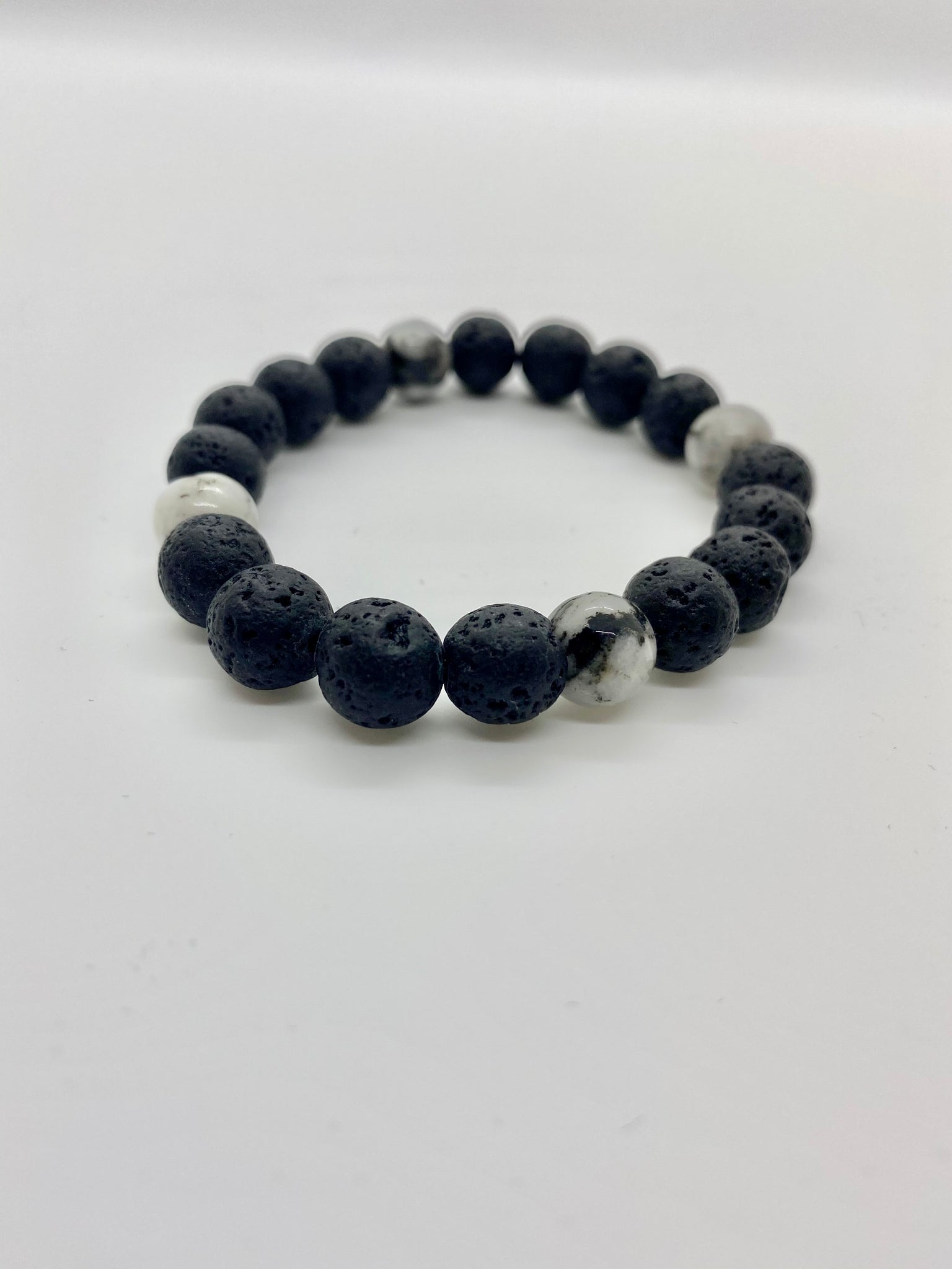 Raw volcanic lavastone mixed with offwhite Tiger eye stones