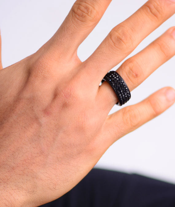 Stoned Black Titanium Rings