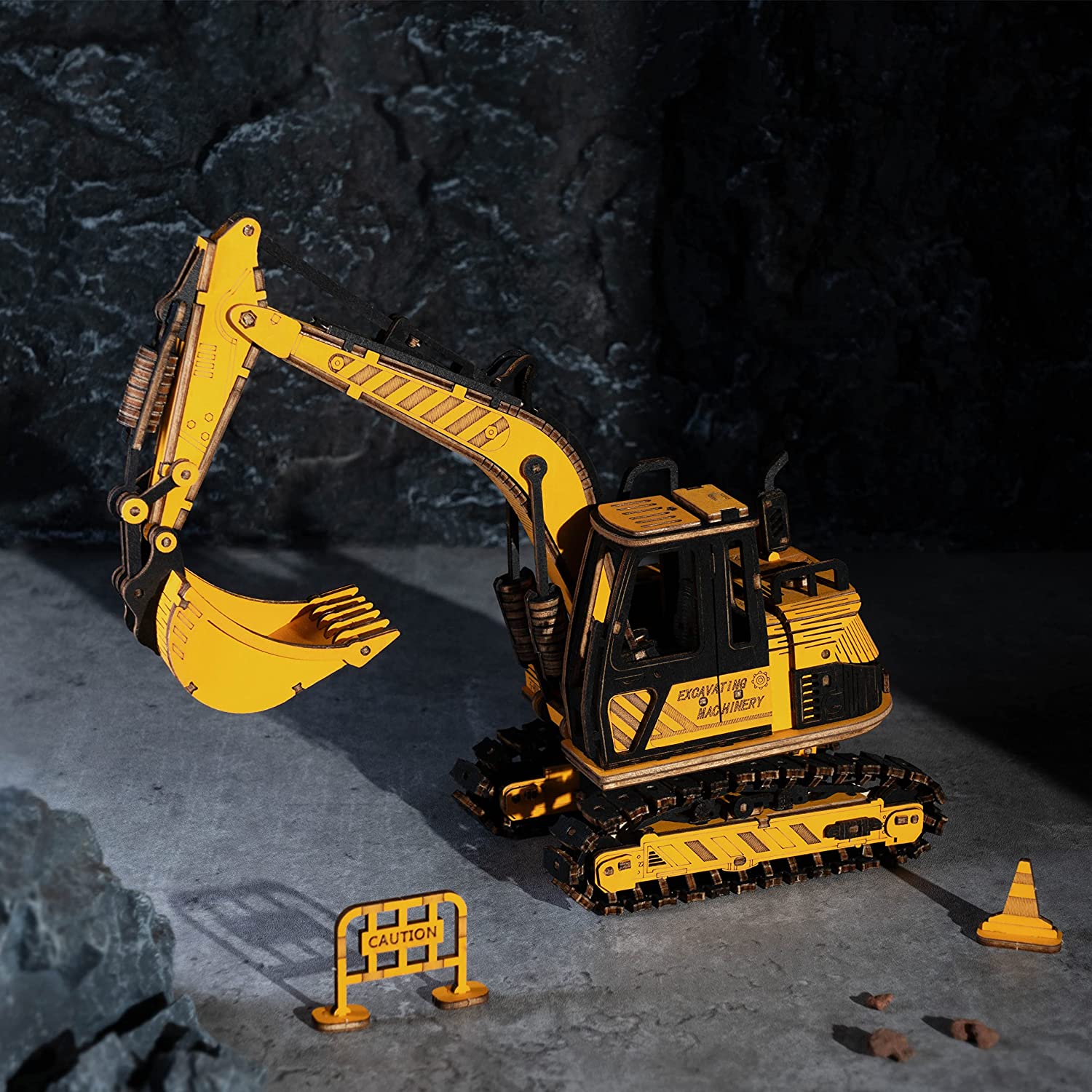 Robotime Rokr Construction Vehicles Truck Toys Set 3D Wooden Puzzles for Boys Toddlers BirthdayTG701K Road Roller
